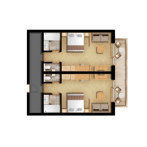 2 eigenständige verbundene Appartment Karkopf mit einem gemeinsamen Vorraum und Hauptausgang zum Hotelflur.